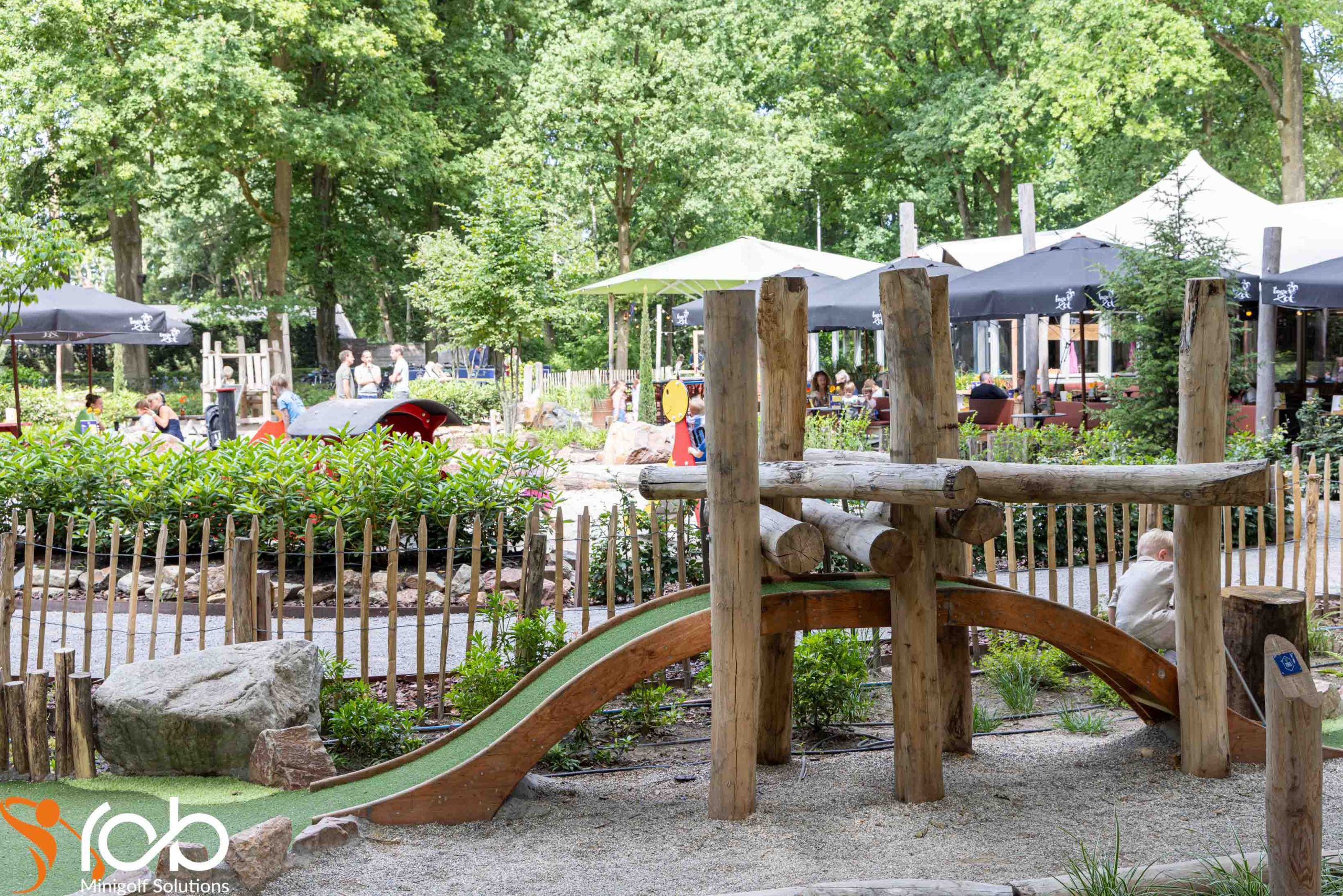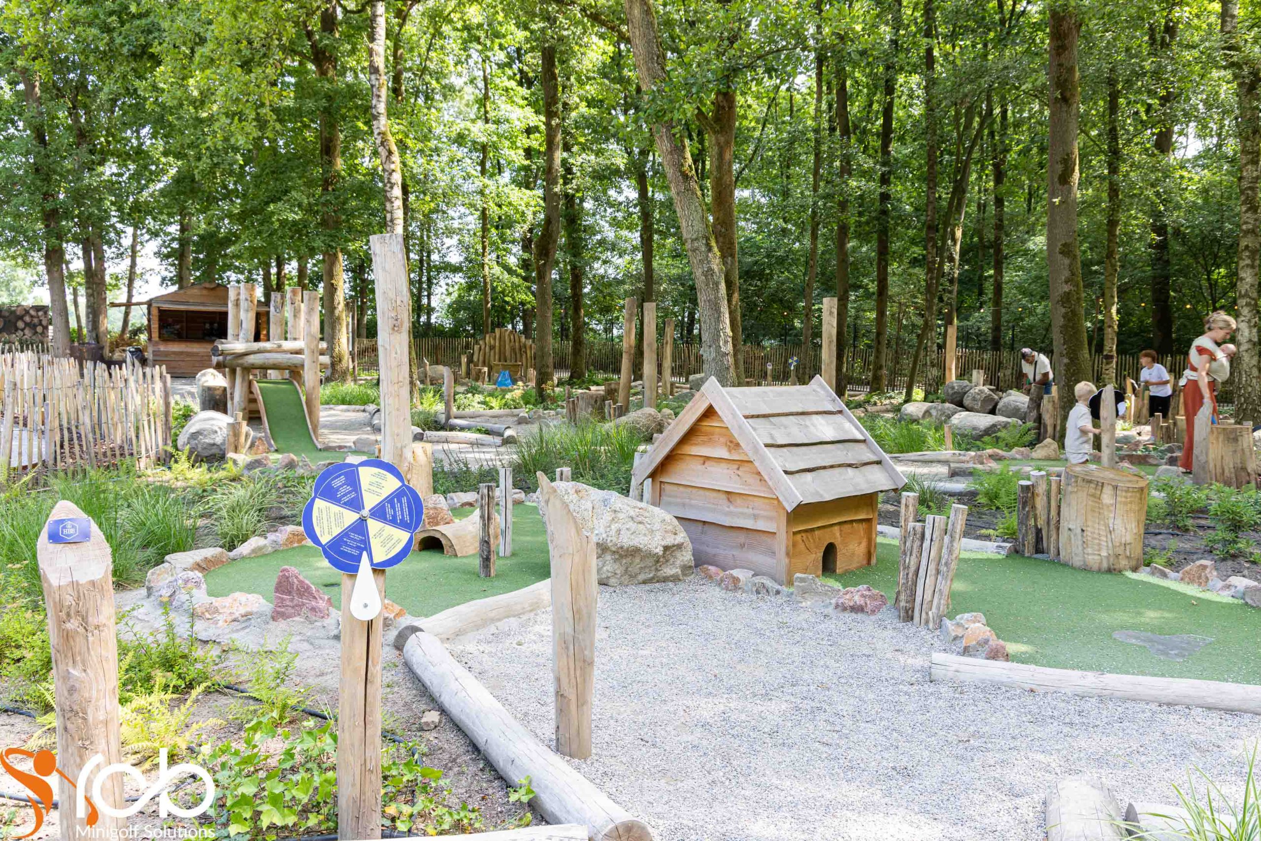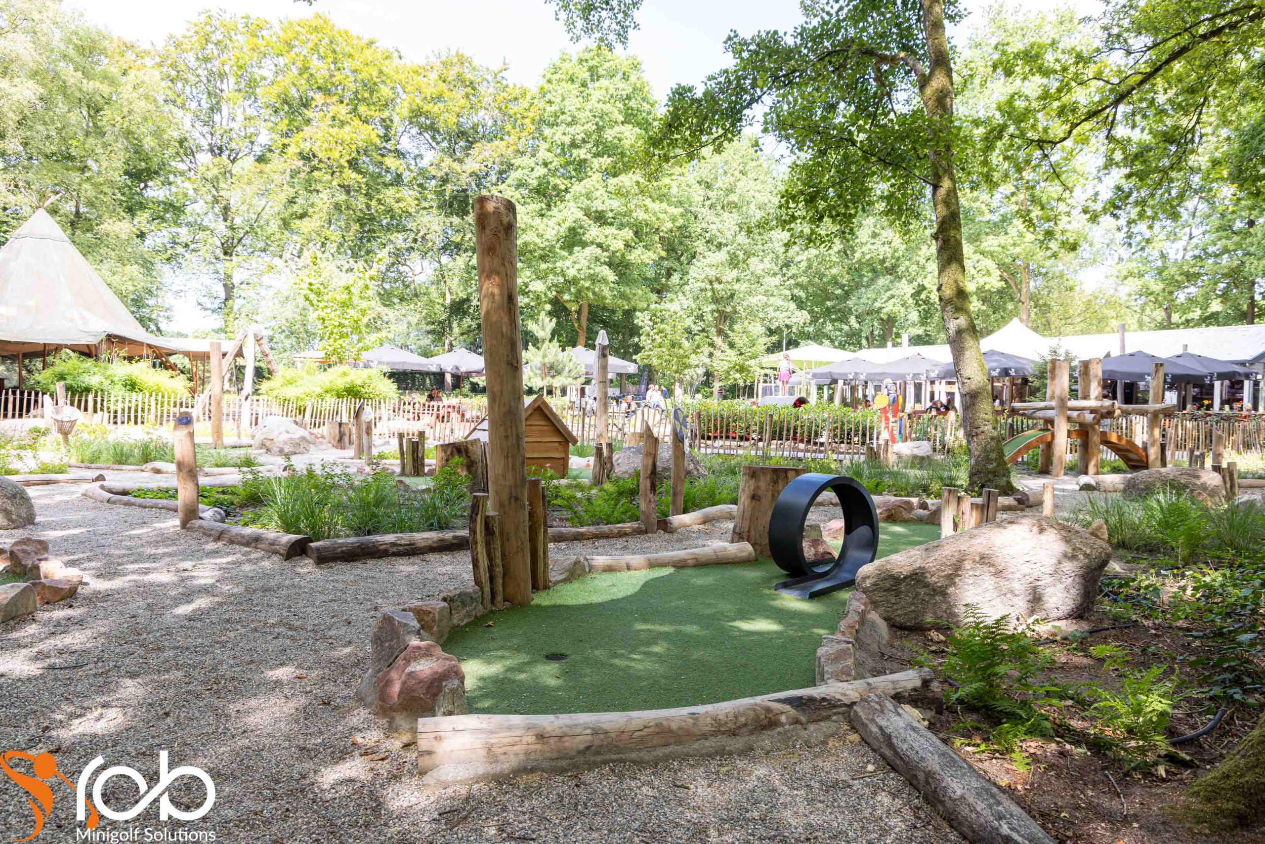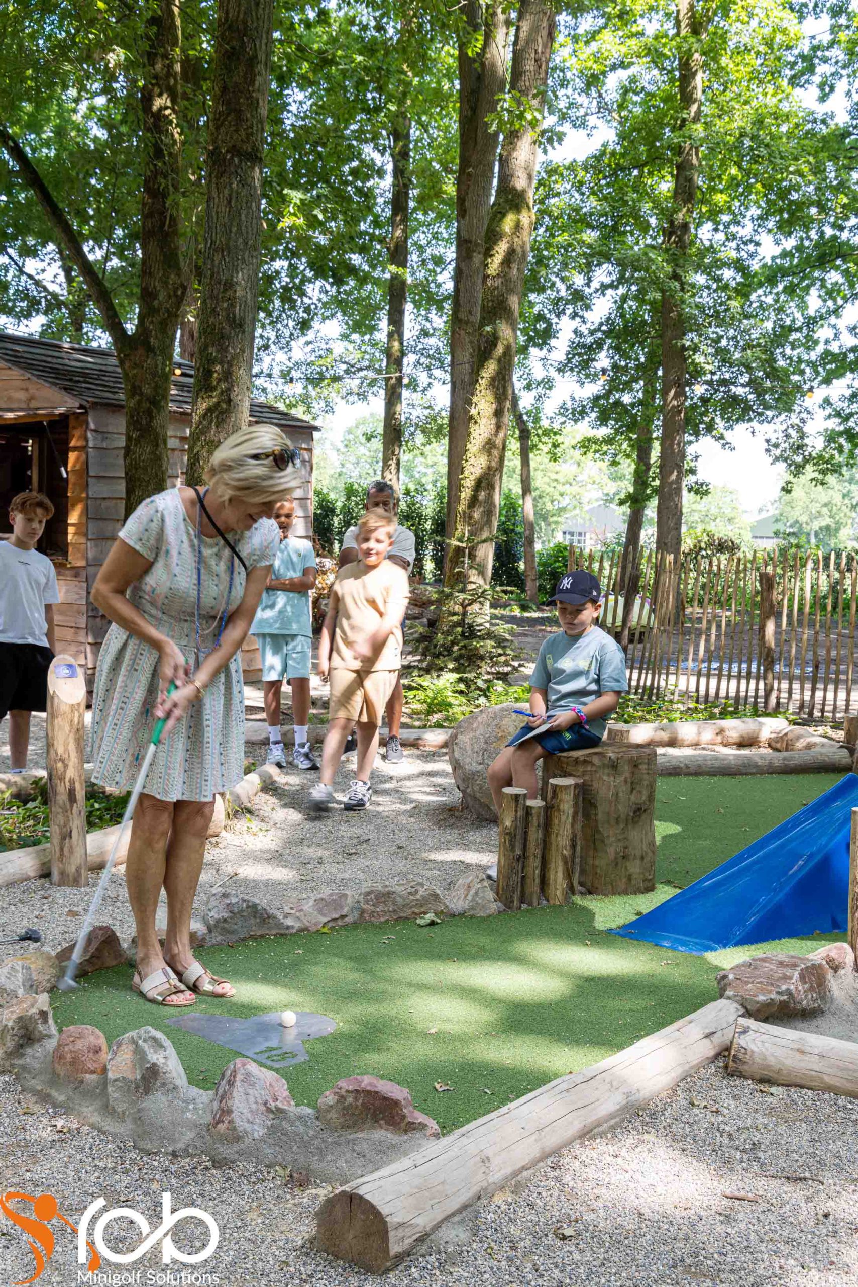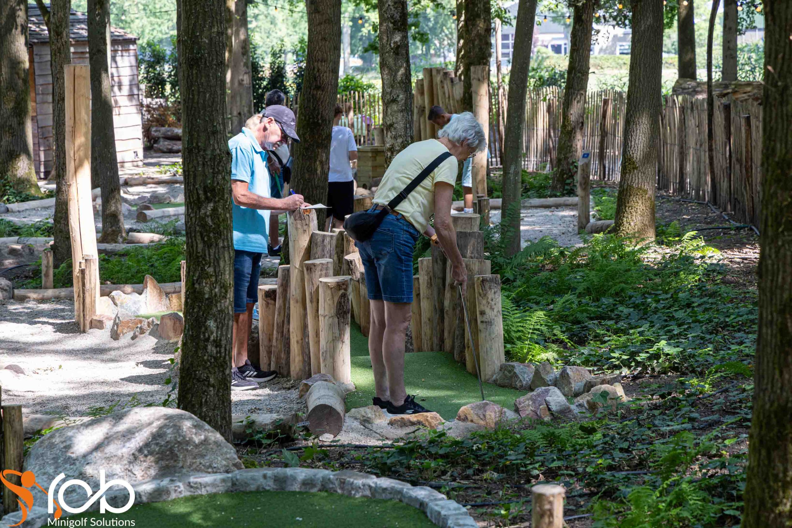 Geen vlakke banen met eenvoudige hindernissen, maar een route vol dynamiek, verrassende bochten, natuurlijke elementen én speelse obstakels. De holes leiden je langs rotsblokken, bruggetjes, boomstammen en tunnels. Je waant je even in een andere wereld, midden in de natuur. Deze aanpak maakt de baan geschikt voor iedereen: gezinnen, vriendengroepen, collega’s, jong of oud. Spelen in een bosrijke omgeving belooft wild veel plezier!