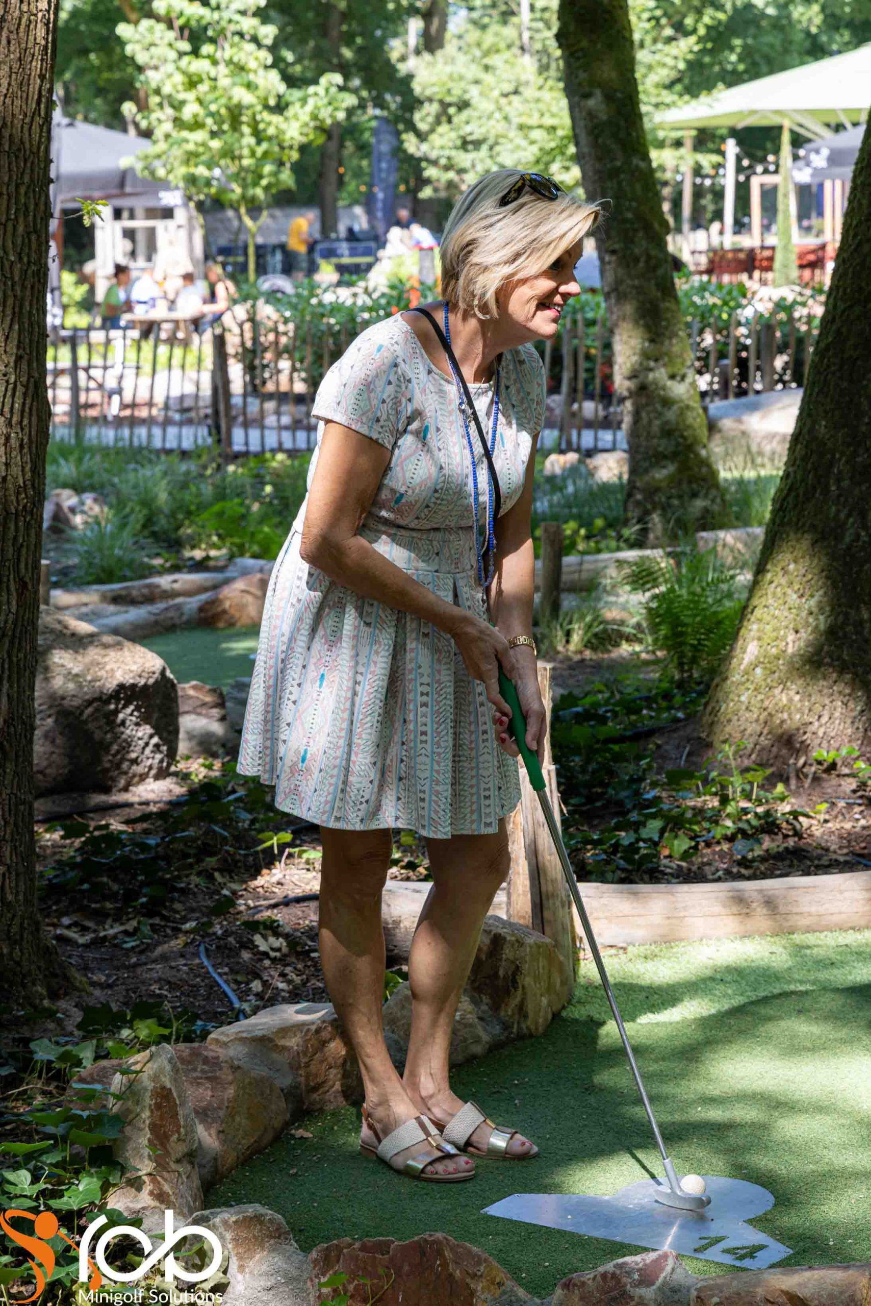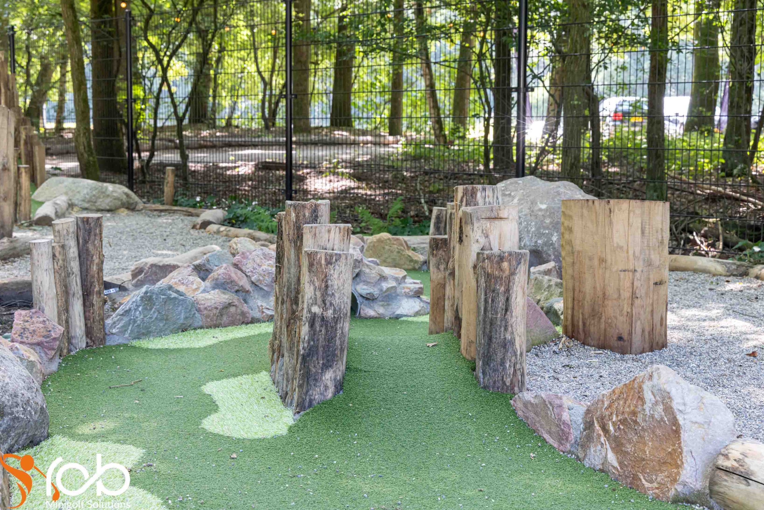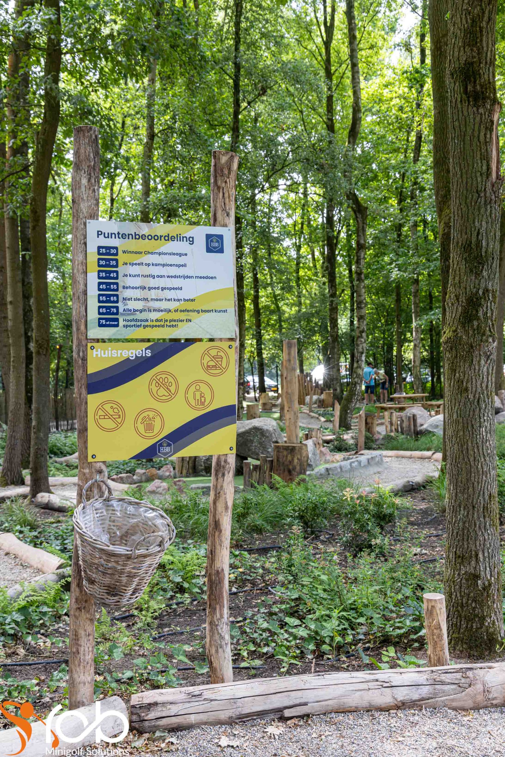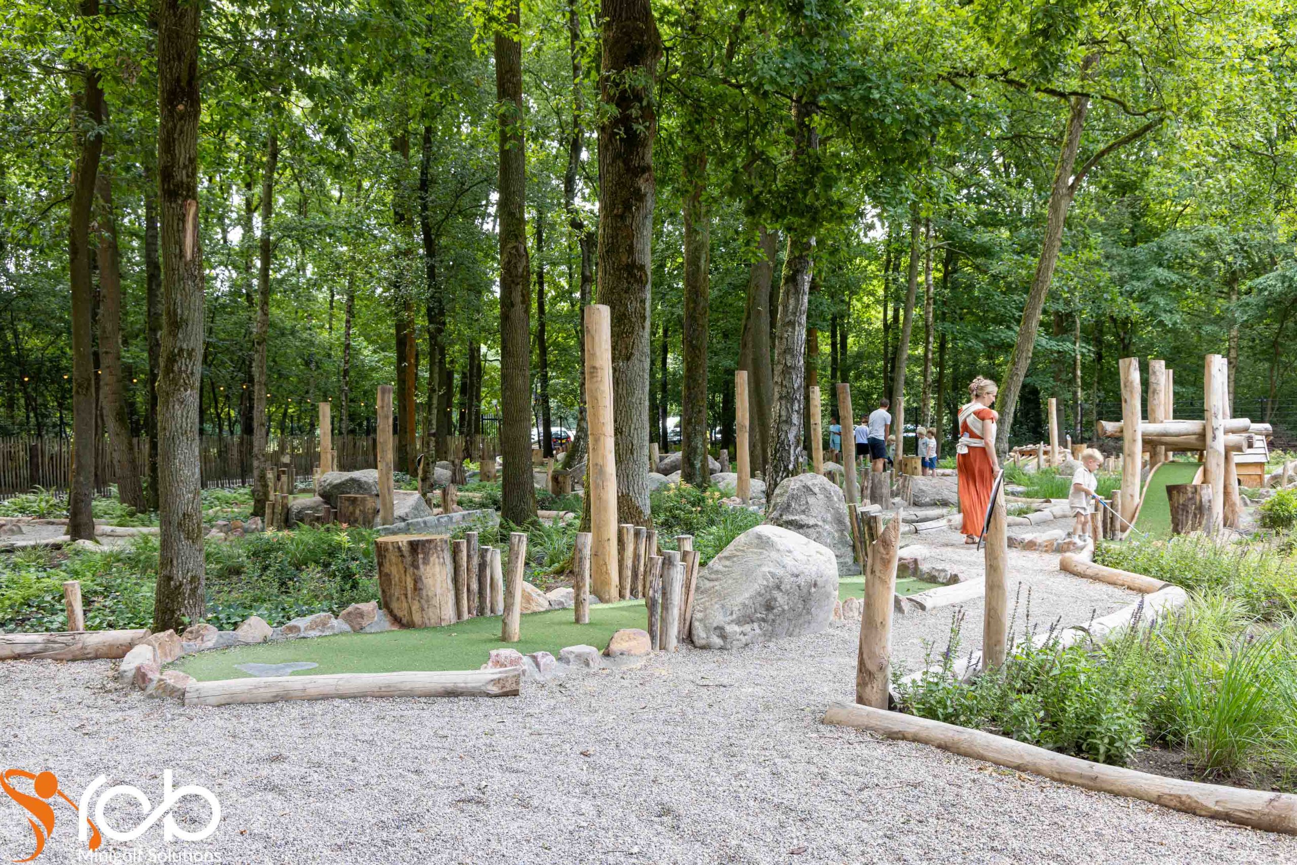 Geen vlakke banen met eenvoudige hindernissen, maar een route vol dynamiek, verrassende bochten, natuurlijke elementen én speelse obstakels. De holes leiden je langs rotsblokken, bruggetjes, boomstammen en tunnels. Je waant je even in een andere wereld, midden in de natuur. Deze aanpak maakt de baan geschikt voor iedereen: gezinnen, vriendengroepen, collega’s, jong of oud. Spelen in een bosrijke omgeving belooft wild veel plezier!